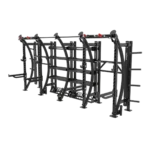 - 585 lbs (265 kg) per “bookshelf” bumper plate rack