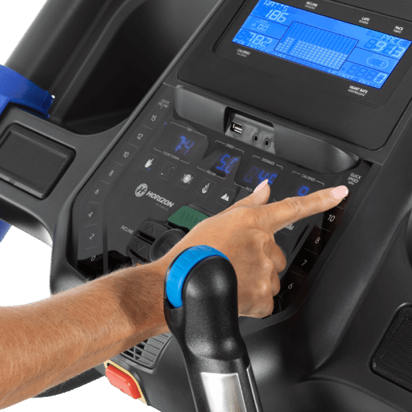 • Quickly shift speed and incline with one-touch keys and handlebar controls