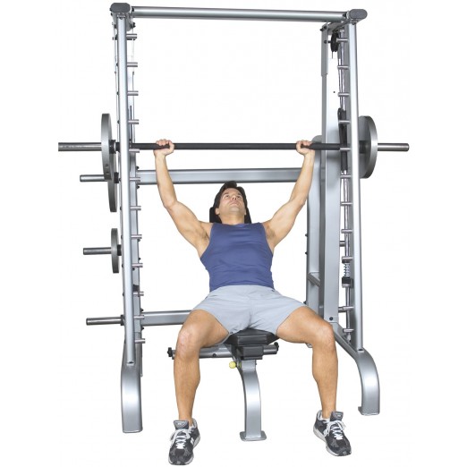 The Inflight Counter Balanced Smith Machine was designed with ABEC-rated ball bearings and features flat oval tubing treated with an electrostatically charged powder for an attractive platinum color. Each machine is made with commercial made materials and is built to stand up to even the busiest fitness center, home gym or school location.