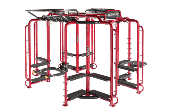 The MotionCage is a series of functional training system exercise stations that can be configured in several ways to best suit any facility’s layout and needs. Configurations can include a Squat Rack, a Renegade Station, Dual Hi-Lo Pulleys, a Boxing Station, a Rebounder Station, a Wall Target Station, and more — all with integrated accessory hooks for bands and resistance straps storage, and shelving for kettlebells and medicine balls. Fitness trainers can train individuals or entire classes on the MotionCage system. A sleek design and colorful finish invite gym-goers to jump on and “Start a ComMOTION”.