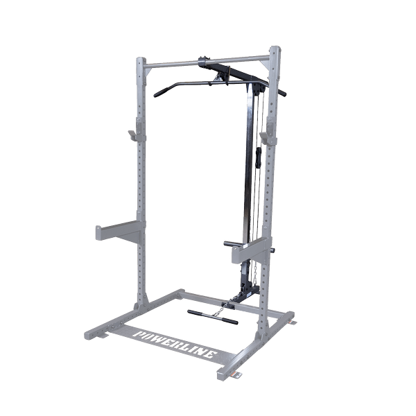 Turn the Powerline Half Rack into a more complete gym with the PLA500 Half Rack Lat Attachment. This optional attachment for the PPR500 Half Rack features high and low pulley access with a no-cable-change design. The PLA500 allows users to perform lat pulldowns, rows, biceps curls, shrugs, and many more exercises in the comfort and stability of their Half Rack. Nylon-coated, aircraft quality cables ensure durability and safety during heavy use. The no-cable-change design makes it easy to swap handles for near unlimited workout variety.