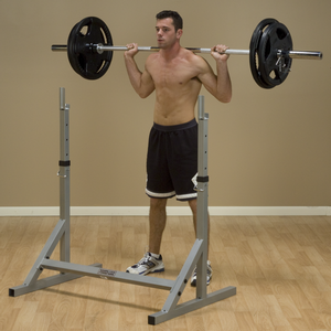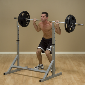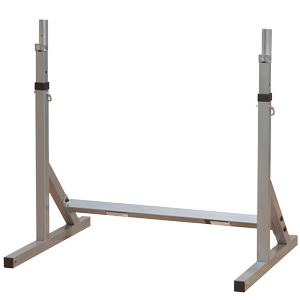 Solid and stable, this Squat Rack holds the bar safe and secure with the heaviest of weights. Bar supports feature height adjustments from 30 inches to 60 inches for doing Flat, Incline and Decline Bench Presses, Squats, Curls, Upright Rows, Shrugs, Calf Raises and much more!