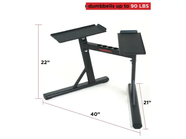 - Weight Capacity: Holds two dumbbells, 90 LBS each