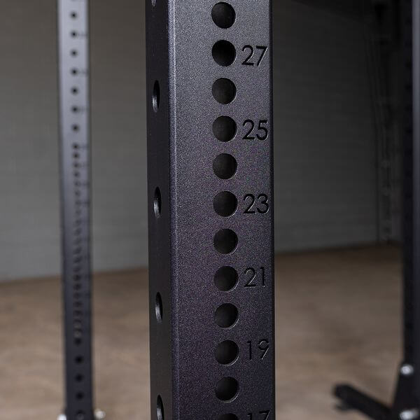 Body-Solid’s full commercial power rack, the Pro Clubline SPR1000, features everything you could want on a power rack today. The 3” x 3” 11 gauge steel mainframe gives the Body-Solid SPR1000 a heavy-duty capacity, meaning it’ll hold up even through the most strenuous of workouts. The SPR1000 Power Rack measures 90” tall making it perfect for chin-ups, standing shoulder presses, and many other exercises that are often compromised on shorter, competitive power racks.