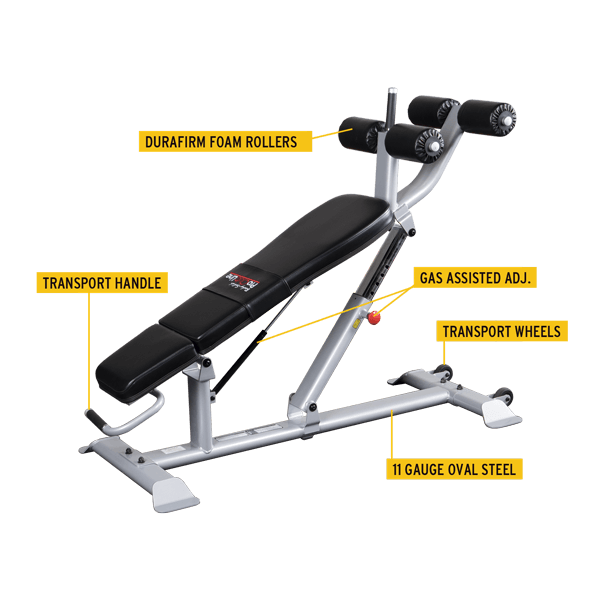 The SAB500 is built to withstand the rigors of a high-traffic workout facility while also maintaining a small enough footprint for smaller studios or homes. Gas-assisted adjustments (0 to 35 degrees) make transitions between exercises both painless and fast. A four-point base eliminates any rocking that can occur during workouts while transport wheels and handle make moving the bench a breeze. Foam rollers also ensure your legs stay steady throughout the exercises, allowing for better development of the intended muscles.