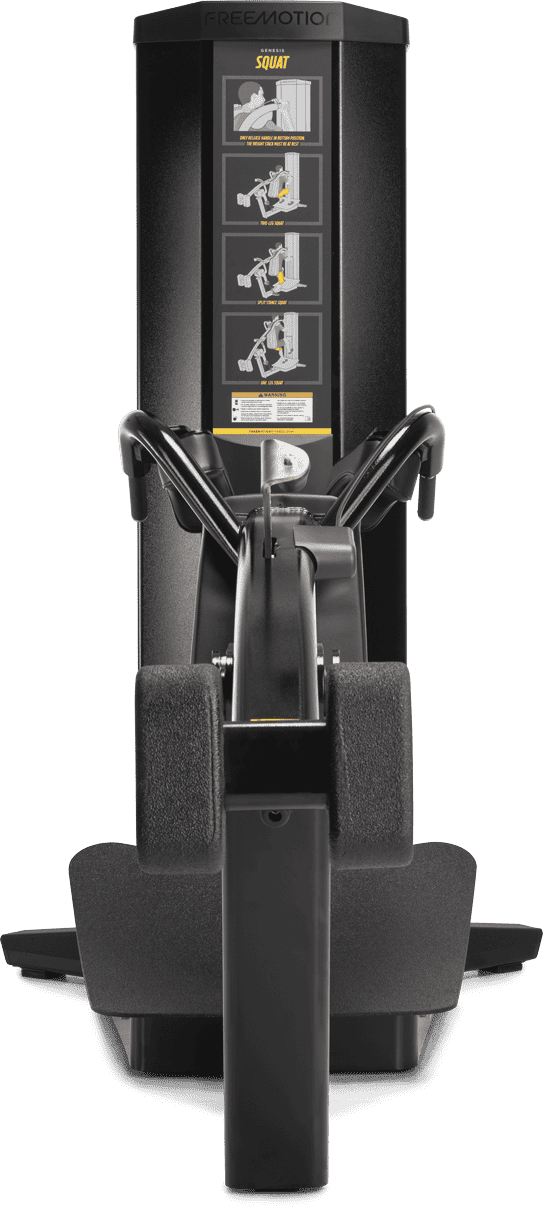 Whether a split, single leg, or traditional squat, the GENESIS Squat boasts unique features to help ensure proper form without sacrificing resistance for a robust workout. Curved platform is textured for secure foot placement. Backpad is adjustable to fit and counterweighted for easy positioning. Contoured shoulder pads swivel for comfort. The Squat machine is built to withstand the rigors of the weight room with rugged construction.