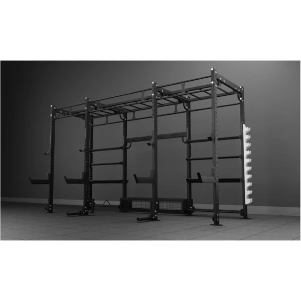 With its extended 14-foot configuration and wide range of integrated storage and training attachments, the XTC rig is ideal for commercial gyms, performance centers, functional training studios, and high-traffic fitness facilities.