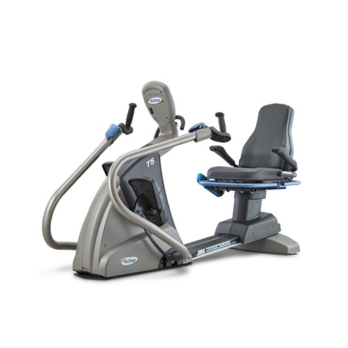 The T5 delivers a low impact, total-body cardio and strength workout that is ideal for users of virtually all fitness levels and functional abilities. With a low step-through, sturdy grab ring, 360-degree swivel seat and locking mechanism, the T5 is easy to access. The user-controlled step length, low-inertia start up and adjustable resistance make the T5 easy to use. Features include 8 workout programs, 15 resistance levels and contact heart-rate handles. Accommodates users up to 600 lbs (272 kg).