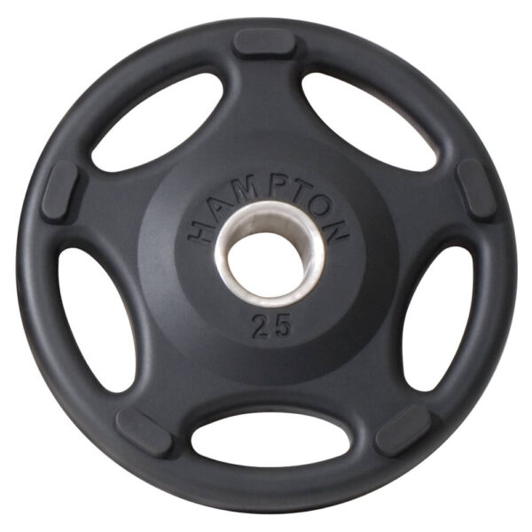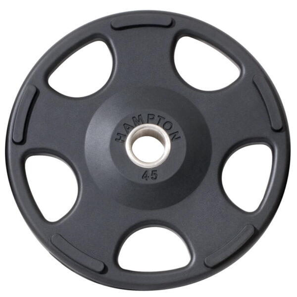Hampton’s grip plates are fully encased in high-quality urethane, preventing scratches to floors and equipment. Urethane is non-porous, therefore easier to clean, more hygienic, and longer lasting than other plate materials. The Hampton Grip plate has a recessed area around the ergonomically curved handles, making it easy to pick up off the floor, and features a steel hub for smooth loading and unloading.