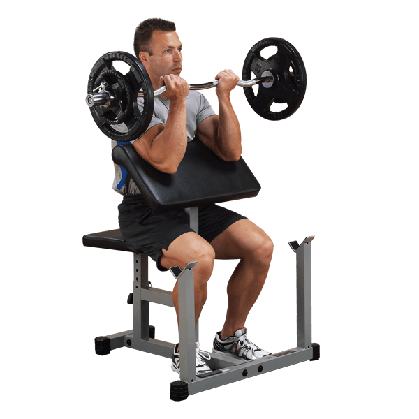 The best exercise for building thick, crowned biceps is without a doubt the bicep curl. This Preacher Curl Bench eliminates cheating and elbow stress while providing perfect isolation to hammer your biceps. Features adjustable seat and extra-wide, stable design.
